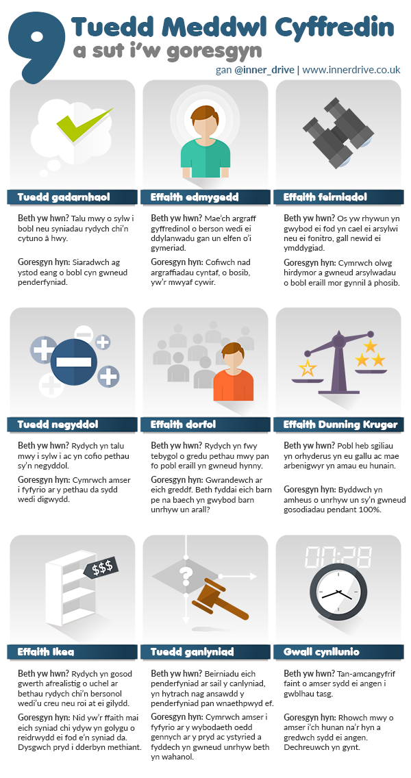 9 tuedd meddwl cyffredin a sut i’w goresgyn